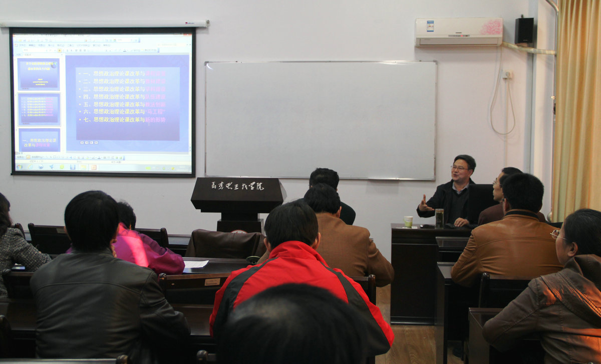 11月21日下午,山东大学周向军教授应邀来我校在开元报告厅(2号教学楼119室)进行思想政治教育类教研交流活动。本次活动由教务处主办,我院承办,学校相关专业教师、我院全体教职工和研究生参加了此次活动。