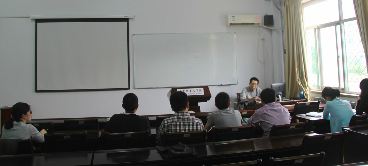 9月16日上午, 我校首批2014级9名博士研究生的思想政治理论课《马克思主义与当代》在2号教学楼119开课,该课程建设负责人谭顺博士做了题为“当代发展问题”的首场专题讲座。这标志着我校的思想政治理论课教学已经涵盖本科、硕士、博士各个层次,建立起完整的思想政治理论教育教学体系。