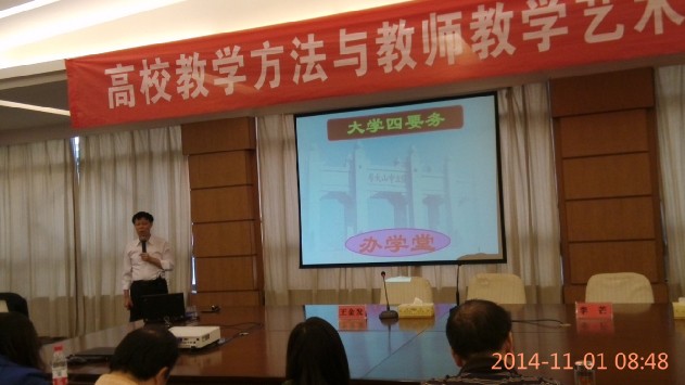 北京师范大学教学行为研究所所长李芒教授从大学教学的现实问题、大学教师的基本能力、教学设计的基本方法、信息技术的教学应用等方面介绍了大学教师的教学方法与艺术。
