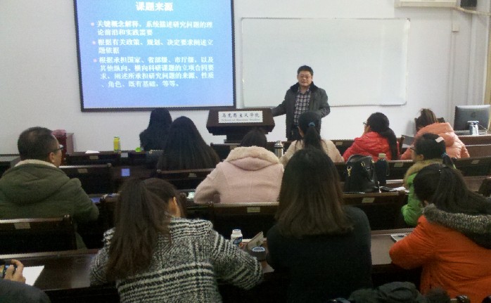 宋教授从课题来源、研究意义、文献综述、创新之处、参考文献等方面阐述了硕士论文开题的方法和流程,就开题报告容易出现的问题向同学们作了简要介绍。在课题来源上,宋教授从选题、选题原则、选题方法三个方面讲述了如何选题,提醒同学们在论文选题中及早提请导师审阅,征求导师意见。接着,宋教授依次讲解了文献来源的重要性、学术论文写作的国家标准,并指出引用参考文献、写作创新之处及可行性分析的注意事项,系统描述了硕士论文的常见结构层次和技术路线图。讲座中,宋教授通过生动的例子,深入浅出,展示了深厚的理论功底。 撰写开题报告是写好毕业论文的第一步,也是关键一步。本次讲座为即将进行开题答辩的同学们释疑解惑,指明了论文开题报告的正确写作方法,为接下来的论文写作打下了基础。 |