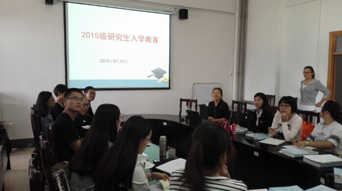9月13日上午,我院2015级研究生入学教育会在鸿远楼511室举行。学院研究生秘书、辅导员朱艳红,研究生会主席李妍,研究生党支部副书记侯丽娜和2015级全体研究生参加了会议。