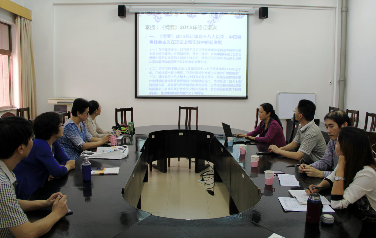 李捷老师首先介绍了教材修订重点和难点、修订的核心内容,2015修订新教材将叙述时间下限2012年即党的十八大召开延伸至2015年上半年,展现了十八大以来的中国特色社会主义在理论上和实践中的新发展,包括全面建成小康社会目标的确定和实现民族复兴中国梦的提出,协调推进“四个全面”的战略布局,具有新的历史特点的重大实践等内容。其次是针对历史虚无主义思潮,新教材进一步从正面讲清正确认识和处理改革开放前后的社会主义实践探索的关系等若干重大问题。再次是教材修订加强了对革命根据地民主政权建设和反腐倡廉、密切党群关系、抗日战争及其意义和地位、1948年的反美扶日运动的兴起及其原因、抗美援朝战争的叙述及其意义等内容的论证。