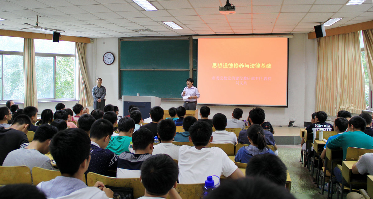 课堂上,刘教授旁征博引,贯通古今,并结合自己大学时期的经历和当前大学生中存在的一些问题,从认识与适应大学生活、更新学习理念、确立成才目标等三个方面,详细阐述了《思想道德修养与法律基础》课“绪论 珍惜大学生活 开拓新的境界”中的 “第一节 适应人生新阶段”的内容。刘老师精彩的讲授,博得了学生的阵阵掌声。本次授课是新生《思想道德修养与法律基础》课程的第一堂课,也标志着我校思想政治理论课特聘教授工作正式启动。