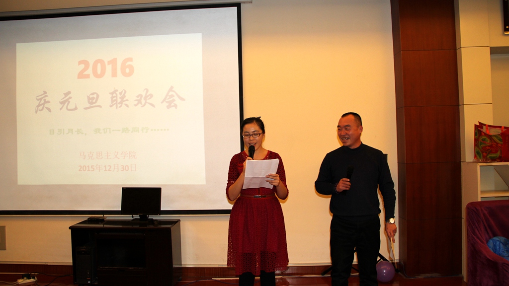 晚会伊始,学院党总支书记张双致新年贺词。张书记回顾了我院2015年在学科建设、教学和科研、党建和工会工作等方面取得的诸多成绩,提出了我院2016年的发展目标和建设规划等,并向全院老师送上了诚挚的新年祝福。