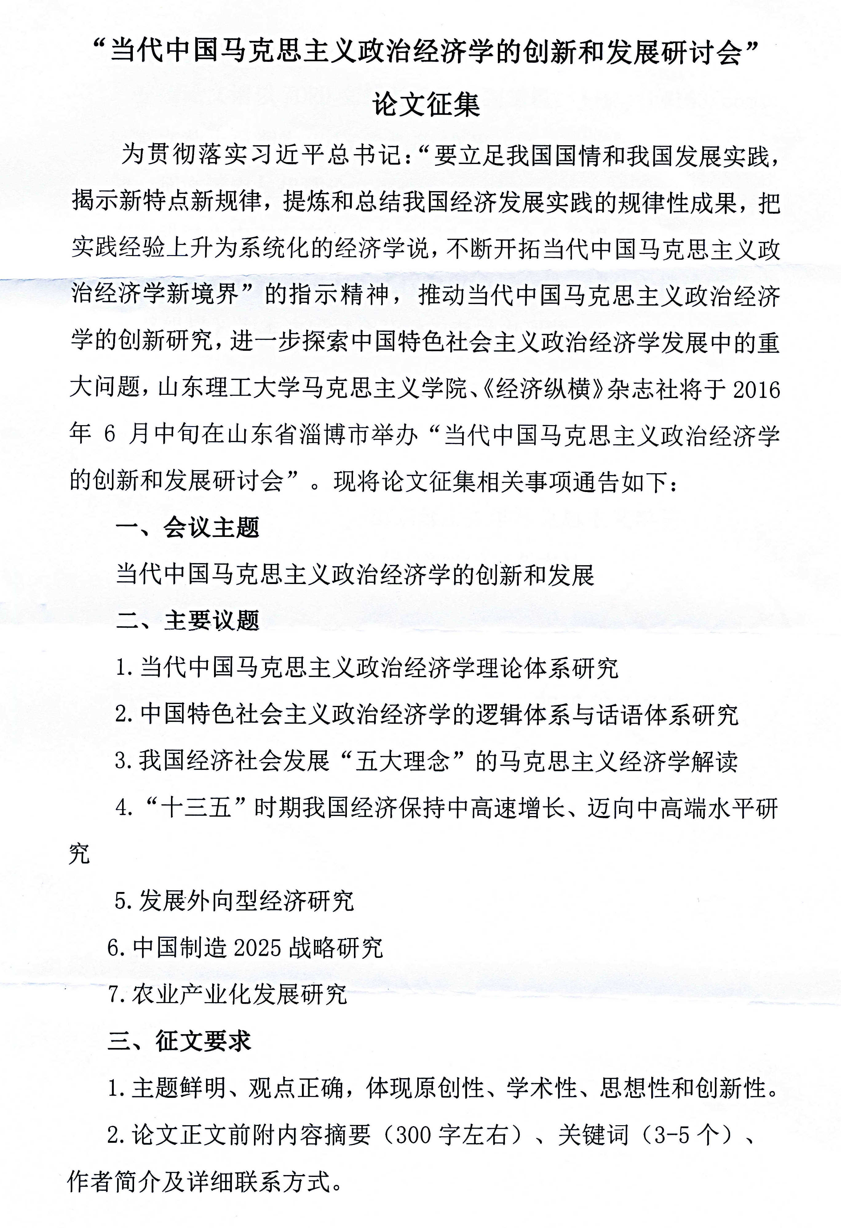 “当代中国马克思主义政治经济学的创新和发展研讨会”论文征集通知