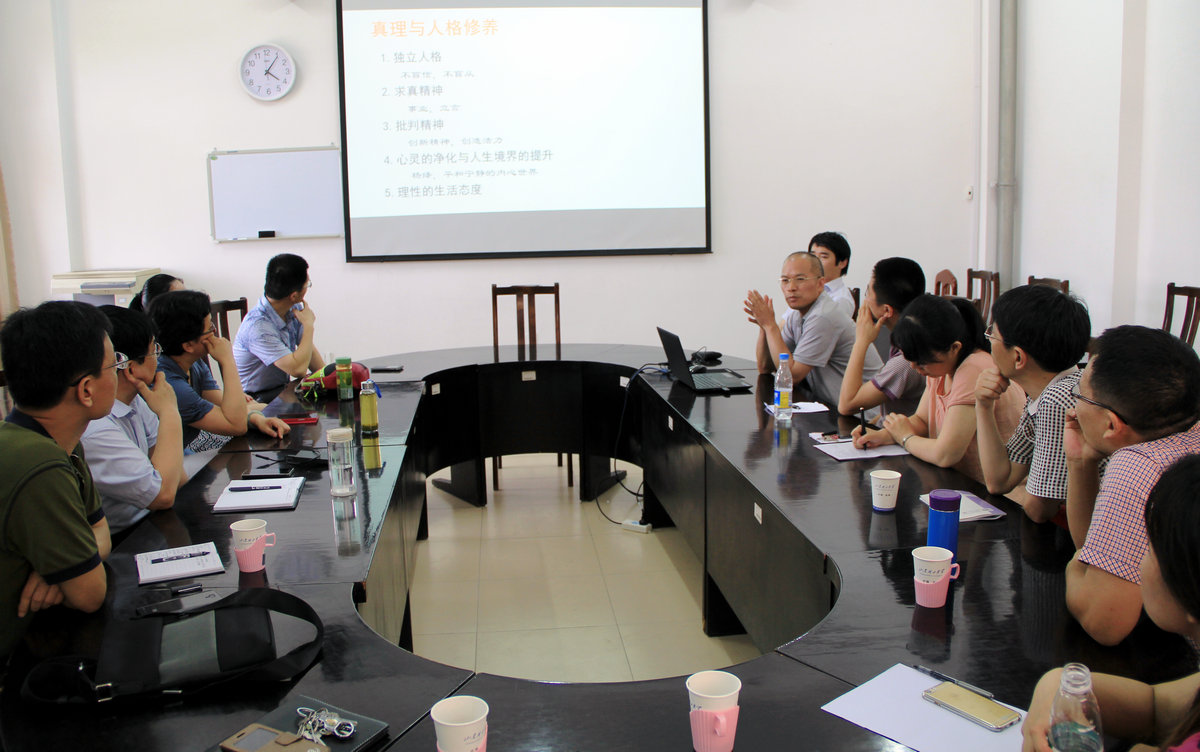 为总结本学期优秀传统文化融入“纲要”课程体系的实践经验,查找不足和短板,以进一步提高大学生思想政治教育课教学的吸引力和针对性,更好地开展下学期的教学活动,学院于6月22日下午三点半到五点半,召集思想政治教育系全体老师在学院会议室召开了优秀传统文化融入“纲要”课总结汇报会,会议由系主任郑炳心老师主持。