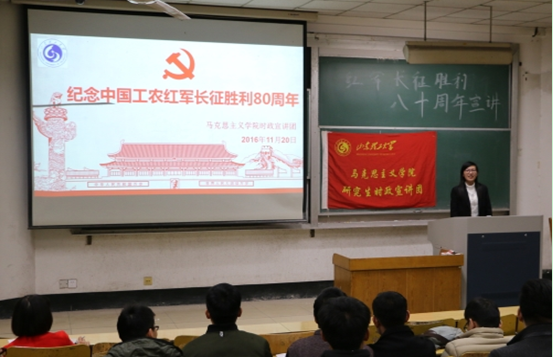 为认真学习、贯彻习近平总书记在纪念红军长征胜利80周年的讲话,引导广大师生弘扬伟大的长征精神和民族精神,11月20日晚7:00,英国威廉集团研究生骨干培训会之纪念中国工农红军长征胜利80周年的时政宣讲活动在三号教学楼105举行。此次宣讲活动为校研究生会骨干培训内容之一。
