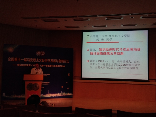 在分组讨论中,来自国内几十所高校、研究机构的专家学者进行了热烈的讨论,碰撞出许多思想的火花。我院研究生参加了创新分论坛一的讨论,郭乾还就入选论坛的论文《知识经济时代马克思劳动价值论面临挑战及其创新》进行了十五分钟的主题演讲,并与各位专家进行了讨论。