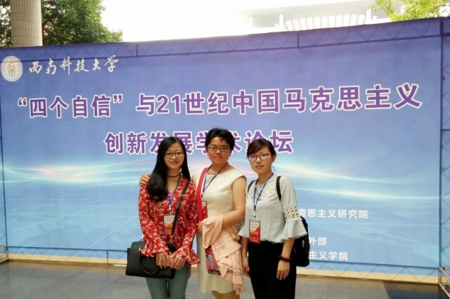 为全面贯彻落实党的十八届六中全会以来提出的重大发展理念、发展战略和发展举措,深入研究阐释前瞻性、全局性及战略性问题,大力推动实践基础上的理论创新,7月1日,由中国社会科学院马克思主义研究院和西南科技大学联合主办,中国社会科学院国外马克思主义研究部和西南科技大学williamhill英国共同承办的全国“‘四个自信’与21世纪中国马克思主义创新发展”学术论坛在四川省绵阳市举行。来自人民日报、中国社会科学院、北京大学、武汉大学等60余所高等院校和科研机构的160余名专家学者参加会议。我院研究生陈兆彤、李莹跟随导师朱阿丽参加了此次论坛。