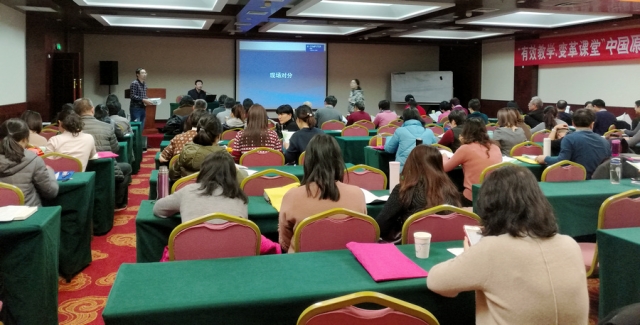 11月24-26日,由师培联盟(北京)教育科技研究院组织的“有效教学、变革课堂”中国原创课堂教学新方法——对分课堂实践教学培训班在青岛举行,我院教育与心理科学系于宗富、招清、张朝3位教师与来自省内外20多所高等院校的70余名一线专业教师参加了此次培训。