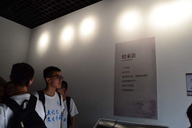 首先在导游杨老师的带领下参观了乡村记忆博物馆,从当年城墙、城门、村庄的建造到李家疃王氏家族几百年的盛衰史,从老槐树、老房屋到词语“金玉满堂”的来历,展示了“村落的记忆”“家族的记忆”“创业的记忆”“人生的记忆”“文化的记忆”五幅生动的历史画卷,同学们都兴致盎然,不断向导游询问,热情高涨。