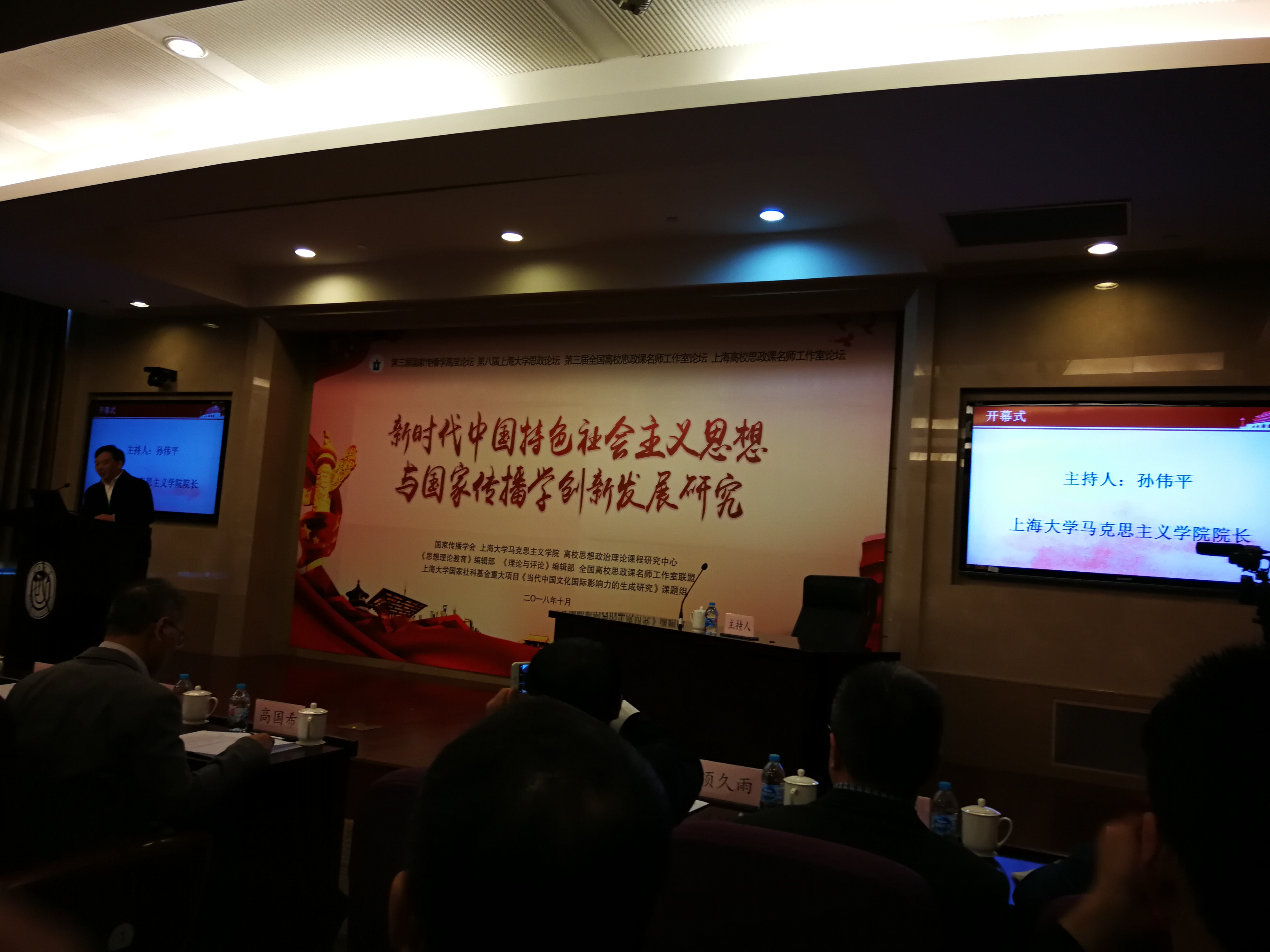 为进一步学习宣传贯彻习近平新时代中国特色社会主义思想,构筑国家传播学,推进国际传播能力建设,由国家传播学会、上海大学williamhill英国、高校思想政治理论课程研究中心、全国高校思想政治理论课名师工作室联盟等共同举办的“新时代中国特色社会主义思想与国家传播学创新发展”学术研讨会于10月26—28日在上海大学召开,来自全国各高校、社科院、党校系统的150余位专家学者参加了会议。我院关利平老师参会。