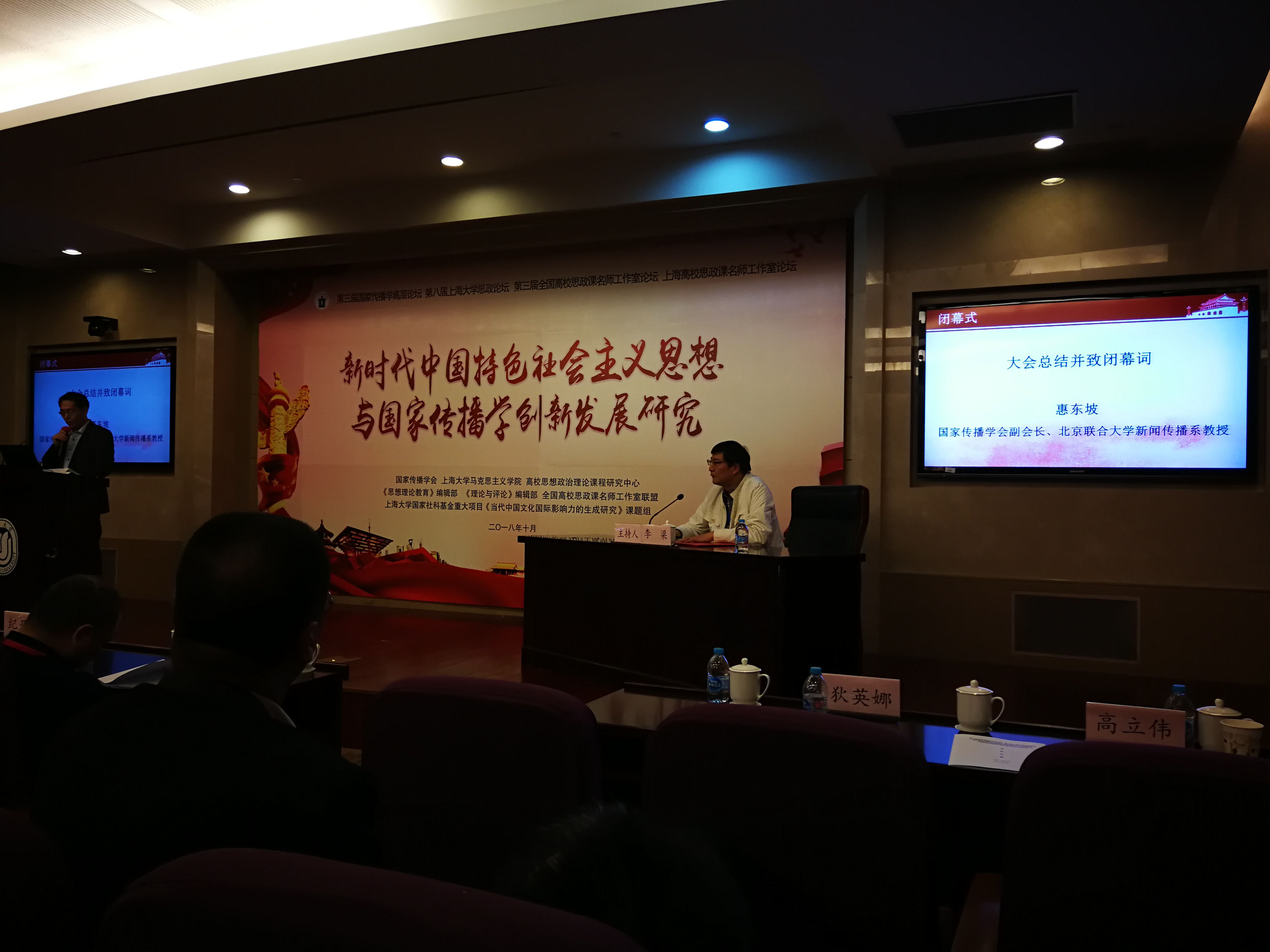 大会闭幕式由上海大学williamhill英国党总支书记李梁教授主持。国家传播学会副会长、北京联合大学新闻传播系惠东坡教授进行大会总结并致闭幕词。