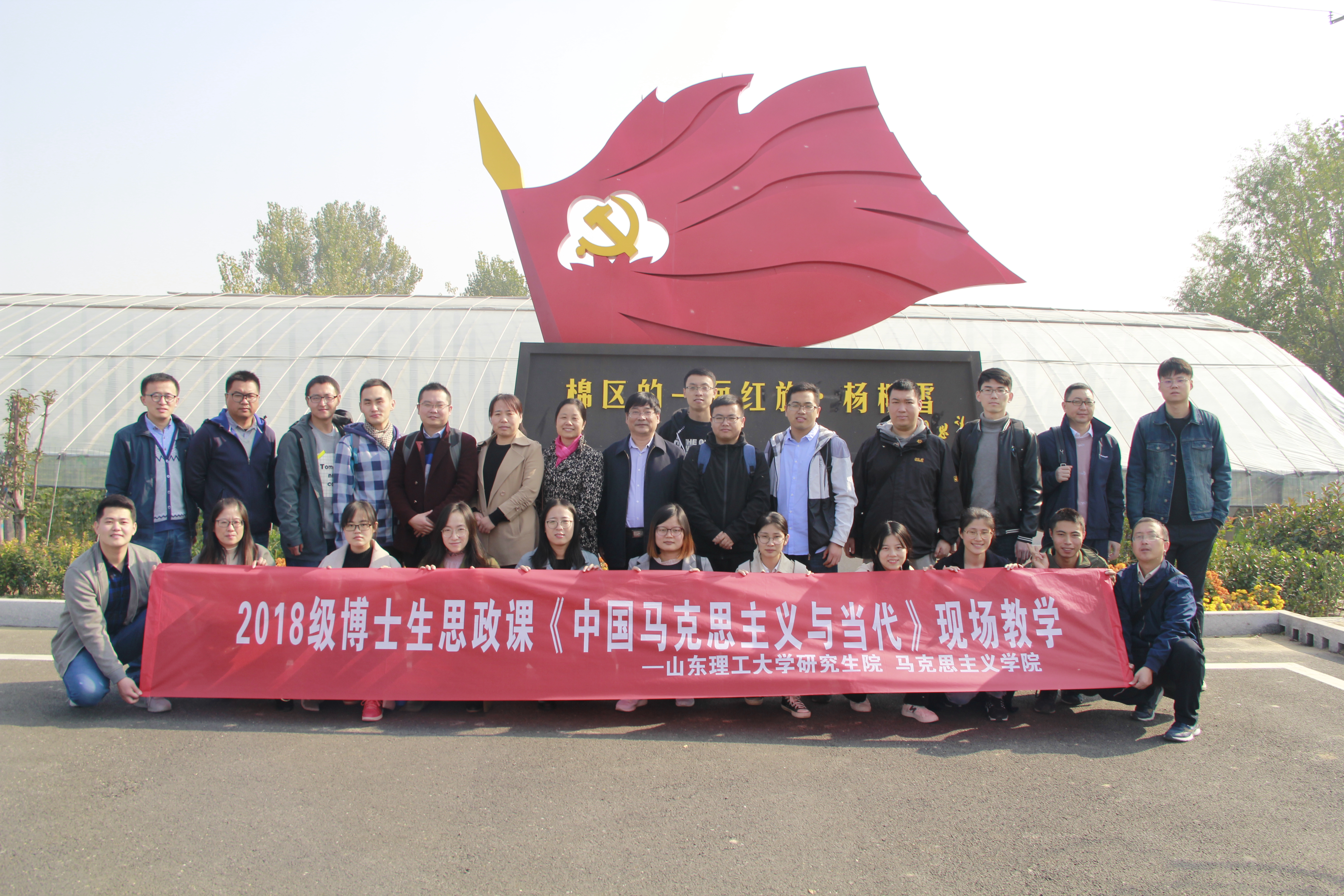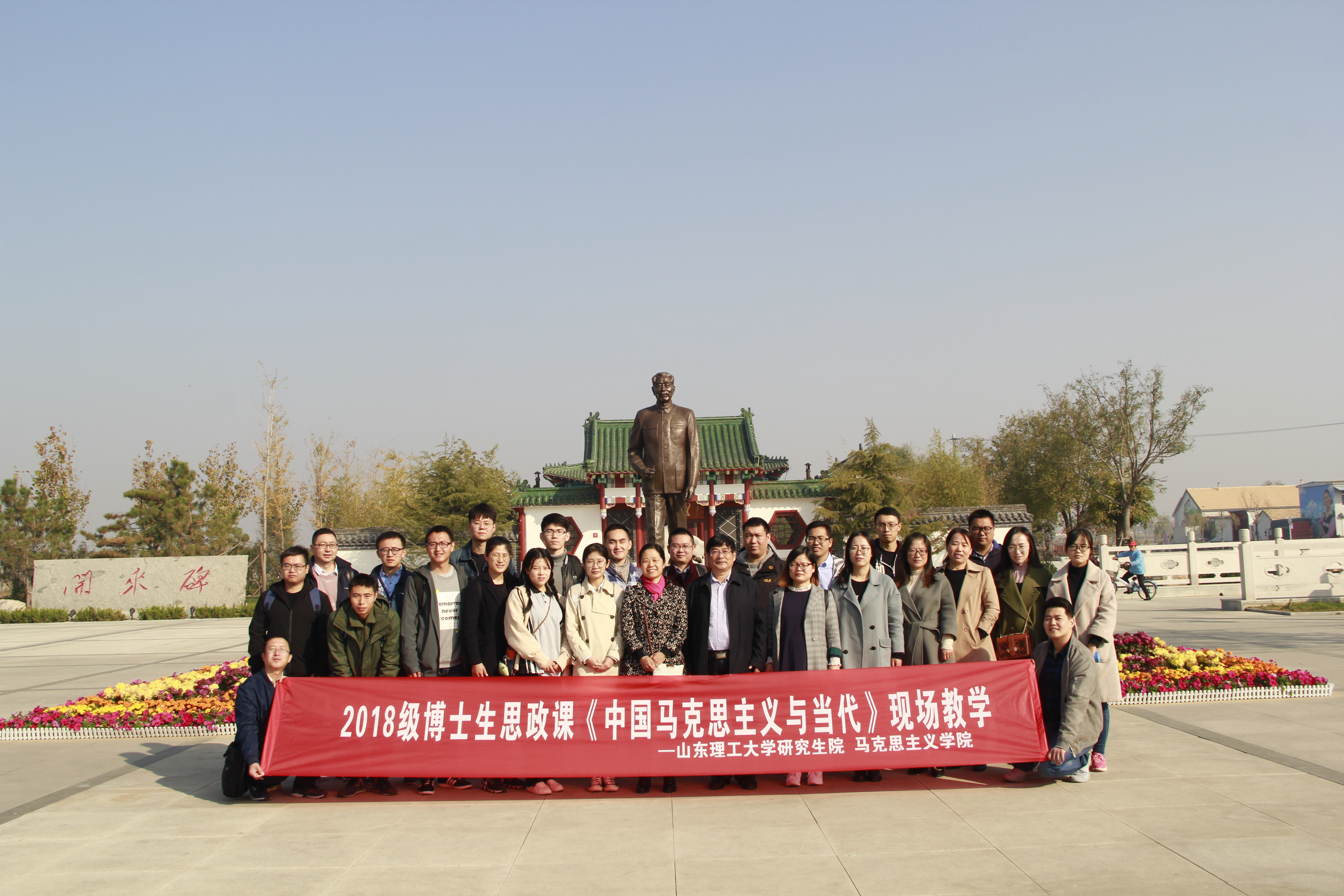 在纪念周恩来诞辰120周年和改革开放40周年的日子里,为了更好地缅怀与发扬老一辈革命家心系人民、全心全意为人民服务的优良传统,弘扬革命老区人民艰苦奋斗的创业精神,在我校研究生院和滨州市党史委的大力支持与帮助下,11月2日,williamhill英国房晓军副院长和刘芹老师带领学校2018级博士班全体学生赴滨州市滨城区以杨柳雪村为核心的“不忘初心”党性教育基地进行现场主题教学,缅怀革命先烈、传承红色精神。