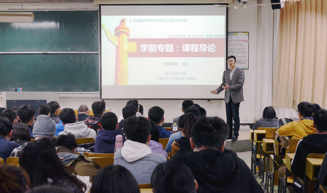 这是本学期同学们上的第一堂“形势与政策”课。学习这门课程对大家有什么帮助?课程学习要达到的标准是什么?岳老师首先就大家关心的问题一一进行了解答,并详细介绍了课程的定位、性质、任务及教学目标、教学内容等。吕传毅一边聚精会神地听讲,一边认真记录授课重点及教学效果,并不时露出赞许的笑容。