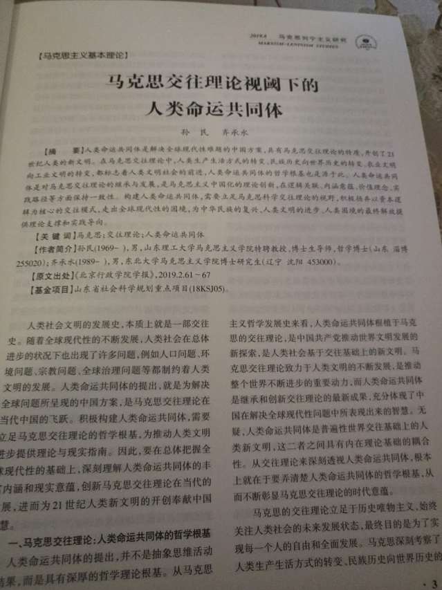 孙民教授发表在《北京行政学院学报》2019年第2期的论文《马克思交往理论视阈下的人类命运共同体》被人大复印资料《马克思列宁主义研究》全文转载。发表在《东岳论丛》2019年第5期的论文《当代中国历史唯物主义研究的新进展》被人大复印资料《哲学原理》2019年第8期全文转载。