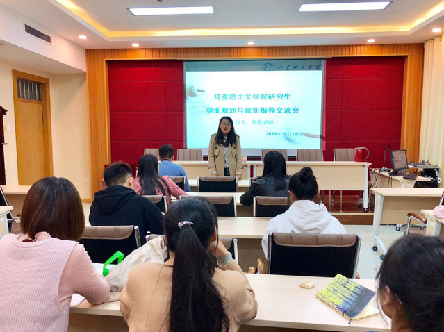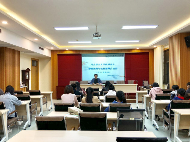 为助力2017级毕业生找准就业方向,明晰学业与就业规划,10月14日晚,我院于鸿远楼618室举办了研究生学业规划与就业指导交流会,交流会特邀文学与新闻传播学院2019年入职辅导员唐磊主讲,辅导员侯倩主持,学院部分研究生参加交流会。