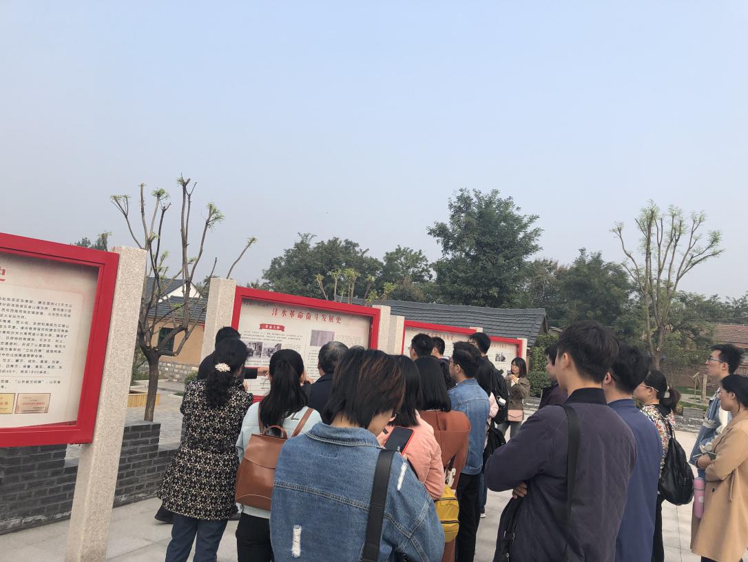 师生一行人首先来到东高村进行主题教学。首先,东高村翟书记从东高古井讲到了东高村脱贫后的变化及脱贫过程的艰难,其中包括村庄道路、饮用水源、整体环境以及村容村貌的变化。接着来到广场,翟书记为师生们讲解了沣水革命奋斗发展史,介绍了东高村的红色革命传统。