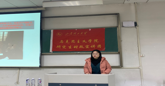 为深入学习贯彻习近平总书记重要讲话精神,有效开展理想信念教育,在党史国史中汲取革命先辈强大精神力量,12月7日晚,我院研究生时政宣讲团应材料科学与工程学院邀请,于西校区第4教学楼301室为该学院2017级、2018级全体入党积极分子展开时政宣讲。