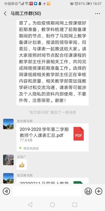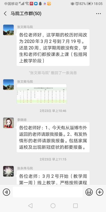 为有效应对新冠肺炎疫情对新学期教育教学工作的影响,确保williamhill英国教育教学质量和研究生培养质量,学院积极响应教育部“延期不延学、停课不停教”的号召,根据学校《关于做好2019-2020学年第二学期教学安排的通知》《关于2019-2020学年第二学期研究生教育工作安排的通知》等文件精神,提前谋划,统筹安排,扎实落实疫情防控期间的教育教学安排。全院教师线下认真准备,线上坚守岗位,积极沟通协调,确保新学期线上教育教学工作平稳有序开展。