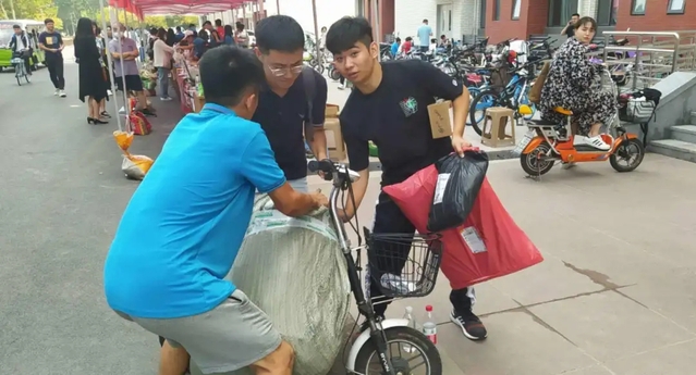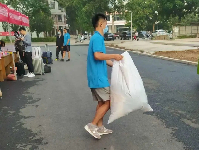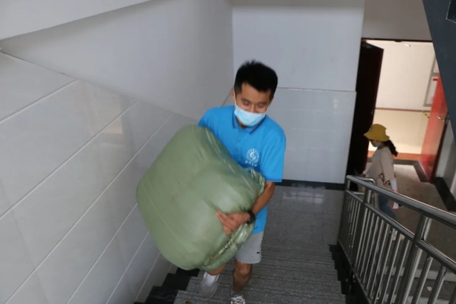 在迎新志愿者的帮助下,新生到各自宿舍进行安顿。