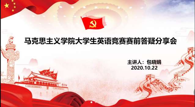 为提高我院研究生英语应试水平,培养良好的英语学习习惯,结合疫情防控实际,近日,我院通过线上会议形式,组织开展了全国大学生英语竞赛赛前答疑会。会议特邀我院全国大学生英语竞赛二等奖获得者、2020届毕业生包晓娟主讲,学院全体研究生参加。