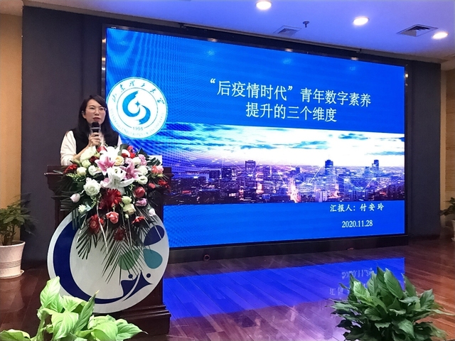 我院付安玲老师做了题为“‘后疫情时代’青年数字素养提升的三个维度”的专家报告。