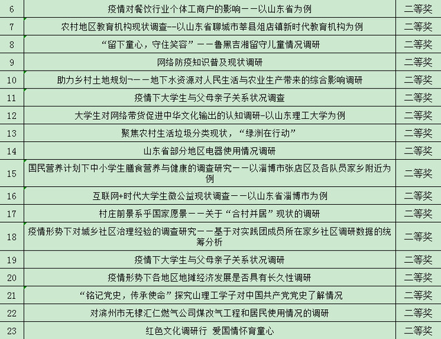 附件:2020年思政课实践教学优秀调研报告评选获奖名单
