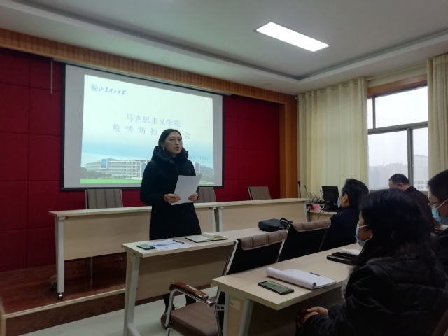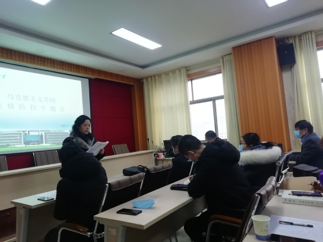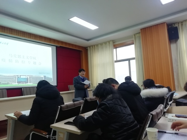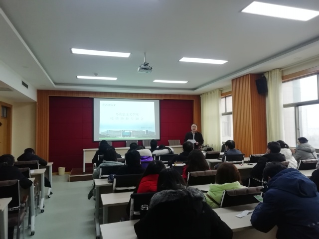 1月15日下午,我院在鸿远楼618室召开全体教职工会议,传达学校2020年度工作总结暨寒假工作部署会精神,专题部署学院疫情防控有关工作。学院领导班子、全体教职工参加会议。会议由学院党总支书记郭奎霞主持。