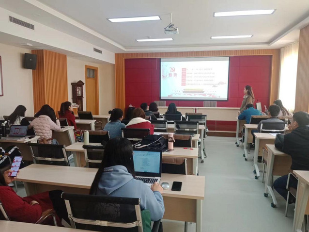 党总支书记郭奎霞强调了学院研究生做好时政宣讲、提升综合素养的重要性。郭奎霞谈到,本学期“四史”宣讲的目的在于追溯光辉历史、宣讲理论政策、传承爱国精神、强化责任担当,希望同学们通过时政宣讲活动的有效开展,展现我院研究生扎实的专业功底和良好的精神风貌。