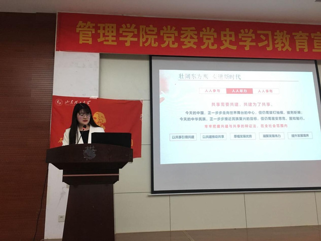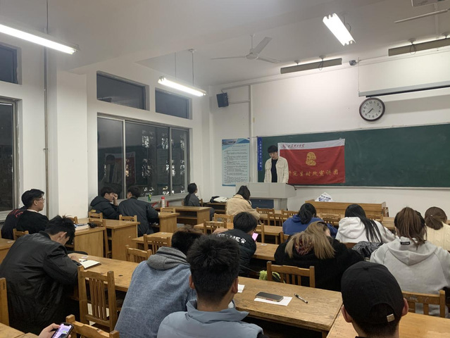 4月8日下午,我院研究生时政宣讲团成员联合管理学院学生会开展了题为‘新中国的社会主义发展历程’主题宣讲活动。宣讲团成员牛婷娴、王浩从社会主义道路开创的背景展开宣讲,通过生动的事例讲解,与同学们一起回顾新中国的发展历程,感悟社会主义发展理论思想的伟力,坚定社会主义理想信念。