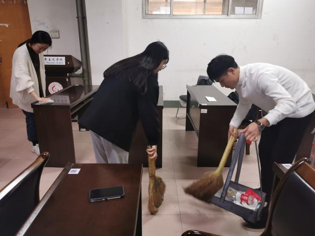 我院研究生在1号教学楼教室、机房等公共学习活动区域组织开展卫生清扫、环境美化等工作。在学院学干的组织安排下,同学们分工明确、干劲十足,经过清理,学院公共学习活动区域的环境得到了较大改善。