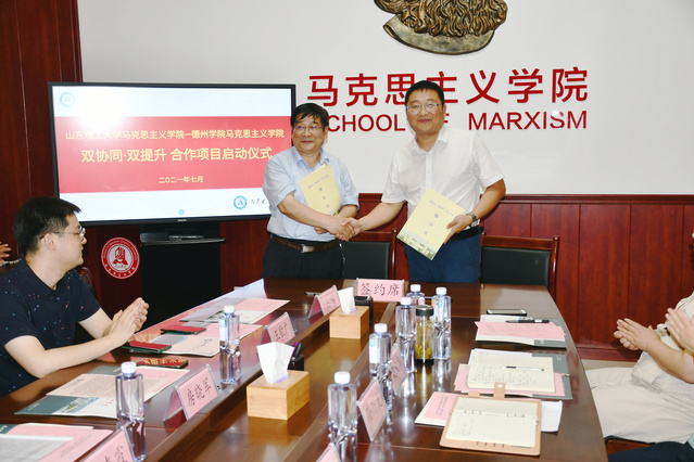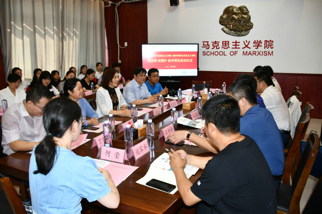 “双协同、双提升”项目启动仪式由德州学院williamhill英国党总支书记冯琨主持。出席仪式的有德州学院williamhill英国副院长(主持工作)孙乃龙、教务处副处长梁玉华、科研处副处长张明峰、williamhill英国班子成员、各教研室(系)主任、青年教师等,williamhill英国的党总支书记郭奎霞、副院长房晓军、院长助理刘芹等一行7人。在启动仪式上,双方分别介绍了各自学院的基本情况,并围绕思想政治理论课教学改革、理论研究、课程建设、队伍建设、人才培养、思政课社会实践教学等方面进行了深入交流。双方表示,希望以此次签约为契机,携手共建“资源共享、优势互补、互利共赢、协同提升”的合作新格局,形成深入的长效合作机制。