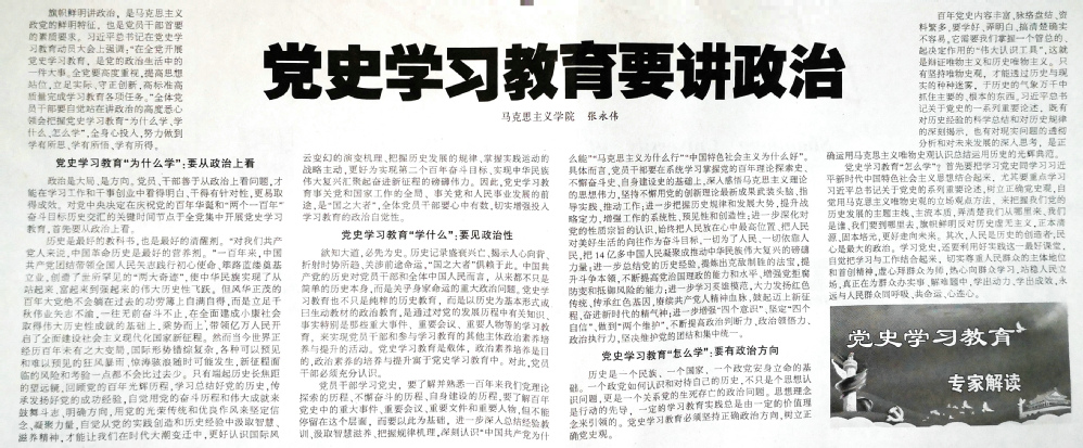 党史学习教育要讲政治----校报刊发我院张永伟老师文章