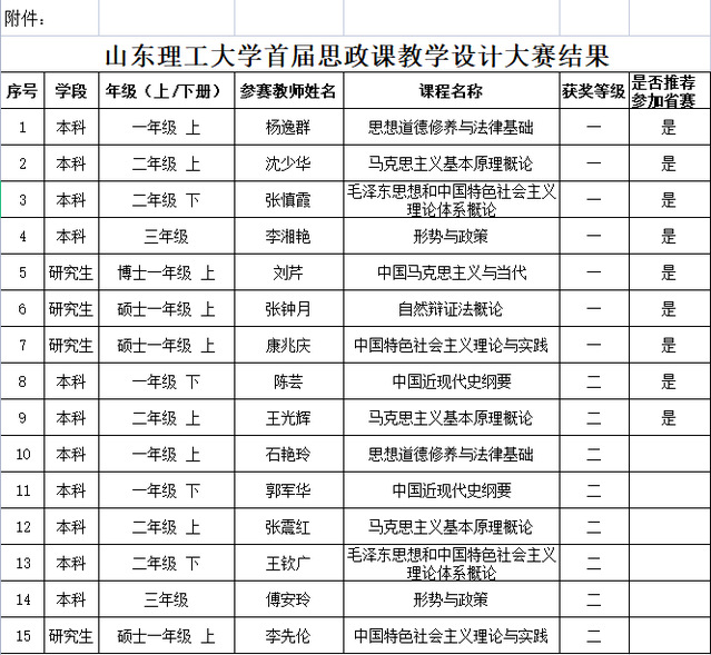 经专家组评审,决定推荐杨逸群的“思想道德修养与法律基础”等9项作品参加首届全省学校思政课教学设计大赛。
