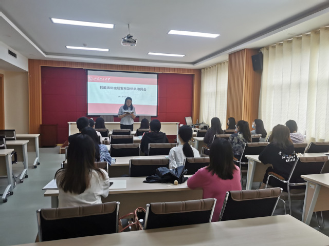 为推动2021下半年时政宣讲工作顺利开展,9月6日上午,学院于鸿远楼618 室举行时政宣讲动员会。会议由时政宣讲团团长于玲主讲,2021级全体研究生参加。