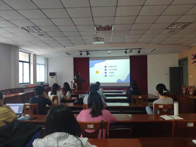 张倩就网络宣传作品制作中的前期脚本策划、制作工具推荐、后期编排修饰、成稿收尾工作四方面进行讲解,为同学们详细介绍了不同音视频软件的优缺点,方便同学们在使用中扬长避短。她提醒同学们在网络宣传作品制作中要有耐心、细心和恒心,要在不断用心的修改中锤炼出优秀网宣作品。