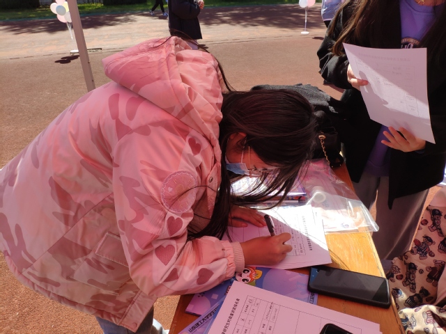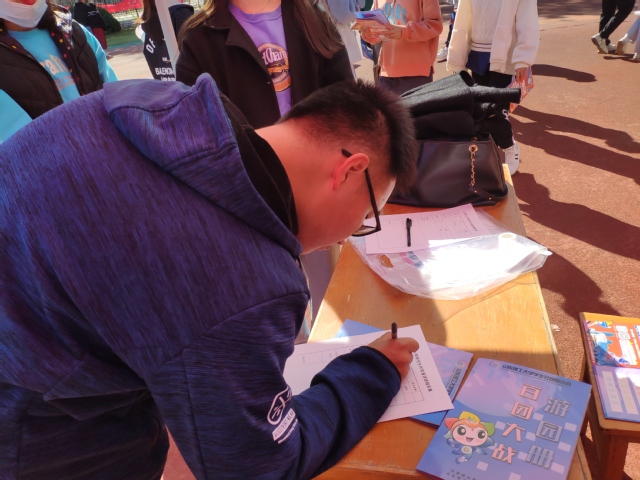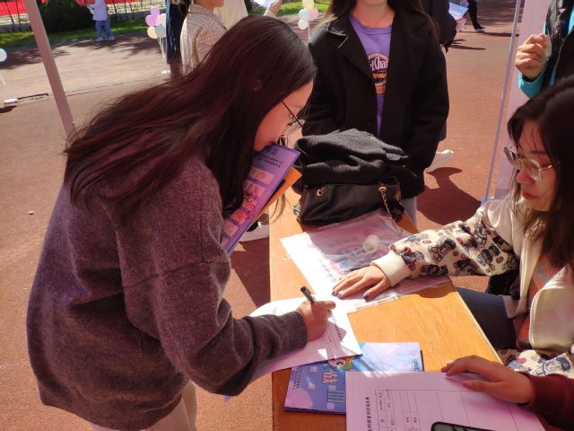 10月17日,在英国威廉集团学生社团联合会的组织下,我院研究生时政宣讲团于学校第二体育场参加“百团大战”社团纳新活动,辅导员侯倩,学院研究生时政宣讲团团长毛文文以及2021级时政宣讲团成员参加。