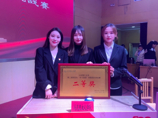 此次比赛分为必答题、专项答题、风险抢答三个环节。在第一轮比赛中,我院研究生代表队队员思路清晰,充分调动知识储备,积极应答。在第二轮比赛中,我院研究生代表队凭借良好的团队配合,一一击破各类题目,取得了190分的好成绩。在第三轮比赛中,我院研究生代表队队员反应迅速,抢答准确,赢得场下观众的阵阵掌声。最终,我院研究生代表队以220分总成绩夺得比赛亚军,荣获二等奖。