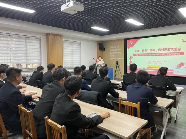 12月9日下午,我院研究生时政宣讲团成员李胜亚、李琪琪到农业工程与食品科学学院开展了题为“四个伟大成就,读懂百年党史”和“弘扬‘赶考’精神,做好新时代答卷”的团校主题宣讲活动,研究生时政宣讲团负责人毛文文全程跟队指导,农业工程与食品科学学院2021级全体班委参加活动。