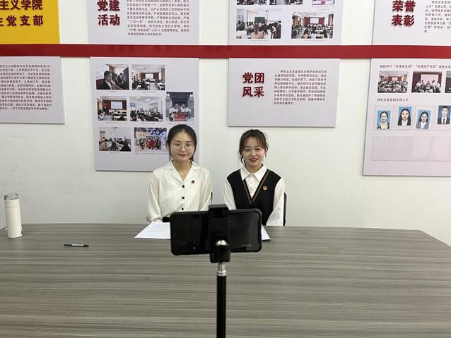 5月12日下午,我院研究生党支部与马尚镇街道团工委在齐悦国际社区党群服务中心联合开展了“‘勇担青春使命,争做有为青年’——学习习近平总书记在庆祝中国共产主义青年团成立100周年大会上的重要讲话精神”主题宣讲直播活动。我院2021级研究生、时政宣讲团成员王洁、万璐,在党支部的推荐下参加。鉴于目前学校疫情防控规定,本次直播活动在校内鸿远楼513室进行。