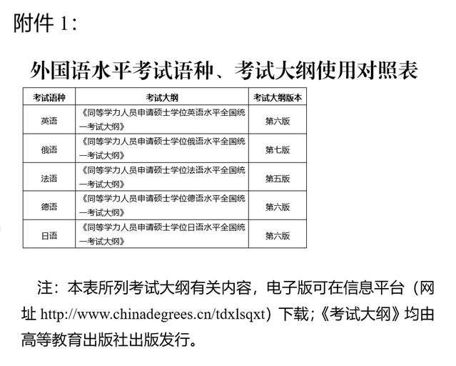 附件:1.外国语水平考试语种、考试大纲使用对照表
