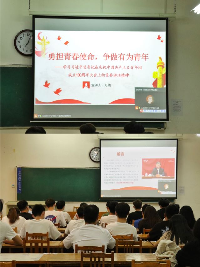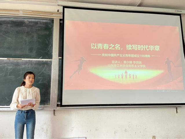 5月17日晚、19日下午,学院研究生时政宣讲团成员李琪琪分别到音乐学院、鲁泰纺织服装学院开展了题为“以青春之名,续写时代华章”的主题宣讲活动。