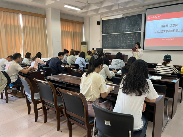 为树立2022下半年研究生学术规范和遵守学术诚信,9月22日下午,我院于1教305室举行学术诚信教育动员会。会议由2022级组宣委员綦晓晨主持,学院第十二届研究生会主席团成员万璐、2021级研究生孔佳硕及学院2022级全体研究生参加。