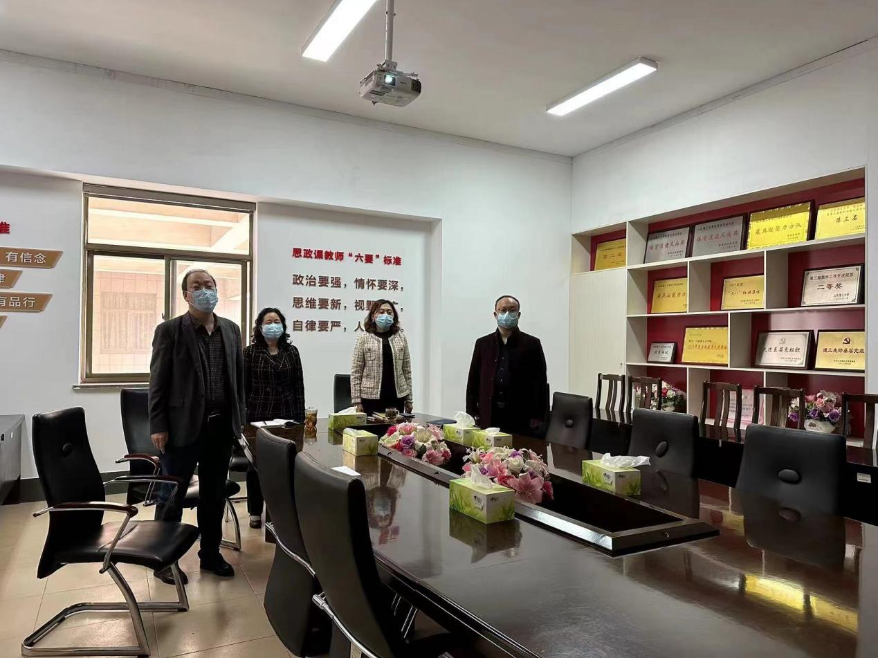 在鸿远楼511会议室,学院党总支书记郭奎霞,党总支副书记、院长刘东锋,副书记宋伟、副院长刘芹、研究生辅导员王寿朋共同观看了党的二十大开幕会直播。
