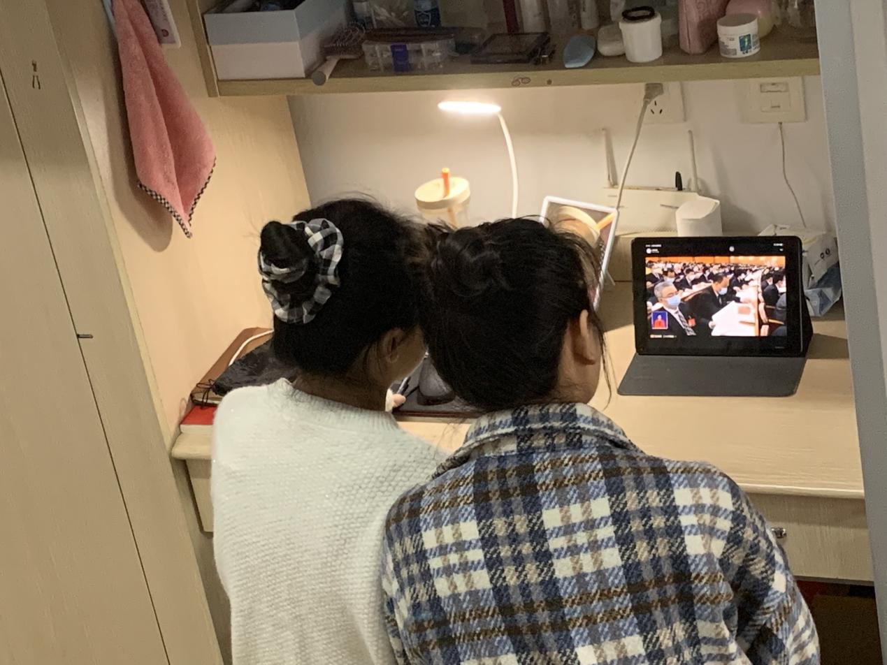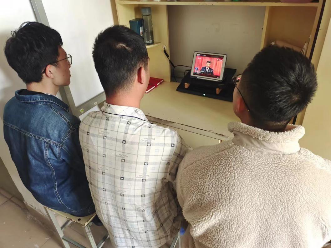 广大师生居家或者在宿舍通过电视、电脑、手机等多种渠道收看收听了直播盛况,共同参与见证党和国家这一重大的历史时刻。