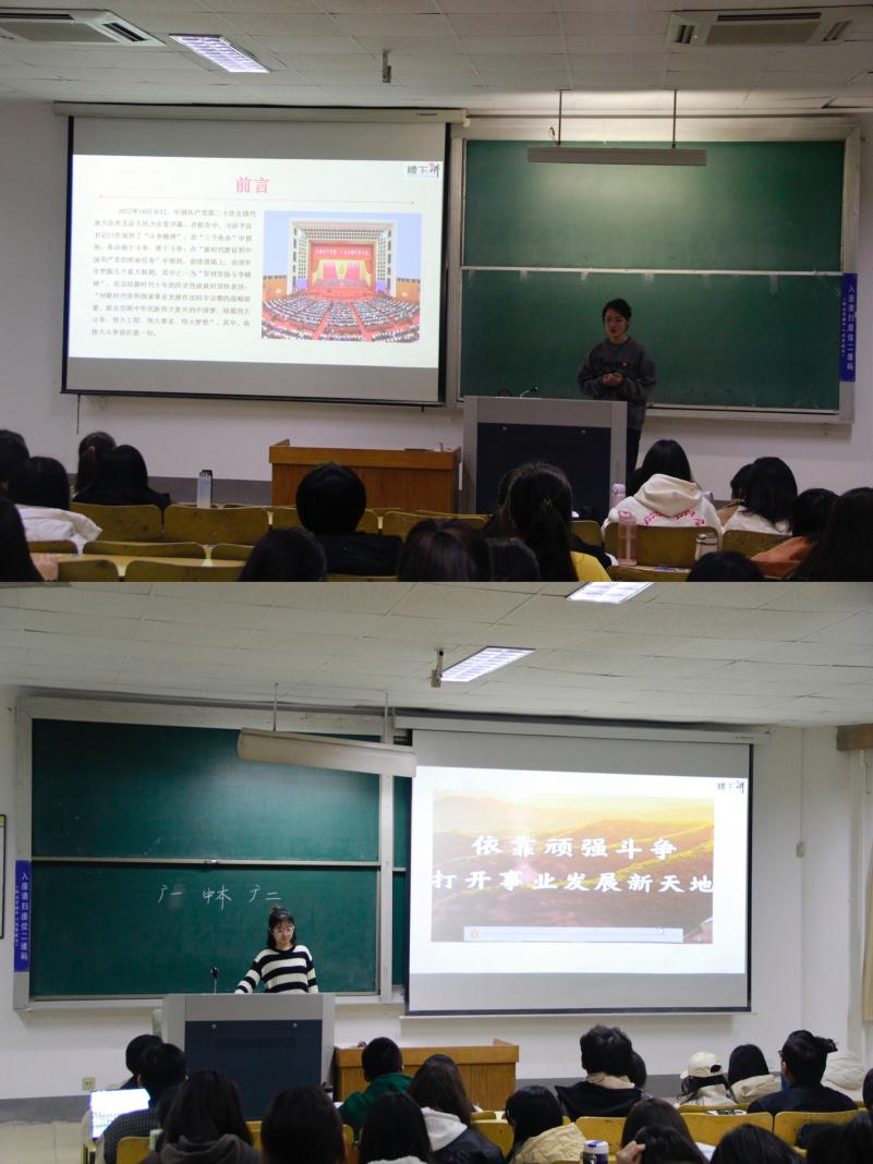 在文学与新闻传播学院,宣讲团成员张锦琳、白涵溪分别开展题为“赓续斗争精神,逐梦伟大复兴”的主题宣讲活动。