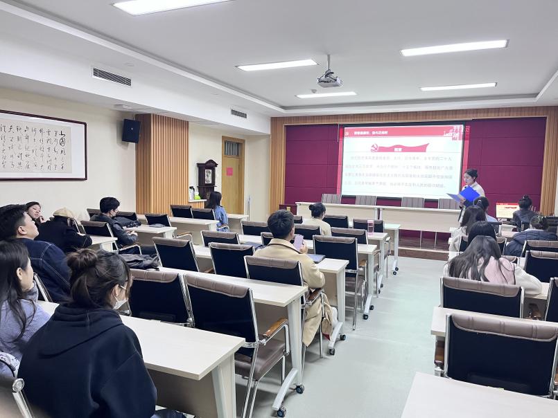 活动伊始,王洁简要介绍了活动流程。本次主题团日活动分为观看视频《雄心百年:从“一无所有”到“再造中国”!》、研究生时政宣讲团成员高梦琦进行专题宣讲及团员代表交流学习心得三个环节。