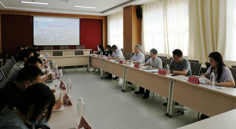 5月24日,校党委副书记邓昌亮,党委常委、组织部长麻国升与党委组织部、宣传部、人力资源处、教务处、社科处等部门相关负责人一行,就“新时代加强高校思政课教师队伍建设”“新形势下高校基层党建工作创新路径”等题目来学院调研指导工作。学院领导班子成员、思政课教师发展研究院相关人员、各党支部书记、部分教师代表参加调研座谈会。