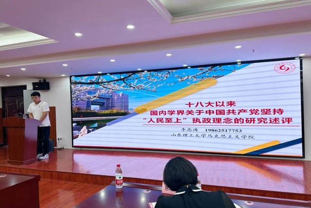 我院2022级硕士研究生李忠涛同学应邀到会作了题为《十八大以来国内学界关于中国共产党坚持“人民至上”执政理念的研究述评》的学术报告,从选题缘由、课题意义和逻辑进路切入,系统梳理了关于中国共产党坚持“人民至上”的生成机理、历史脉络、核心要义、实践路径等方面的研究成果,融合提炼了当前关于坚持“人民至上”研究领域现存成果的四重价值,总结提出了当前该研究领域有待进一步拓展深化的问题,并结合自身研究基础阐述了关于坚持“人民至上”理论生成理路的系统思考,汇报内容得到与会专家教授的一致肯定和高度评价。